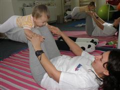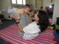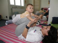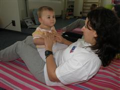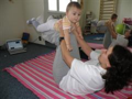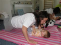 - aceeasi pozitie ca la exercitiul anterior, prindeti copilul si ridicati-l deasupra d-voastra.