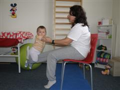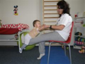 - din asezat pe scaun cu un picior intins, asezati bebelusul in fundulet pe gamba d-voastra si il tineti de manute. Ridicati si coborati gamba.