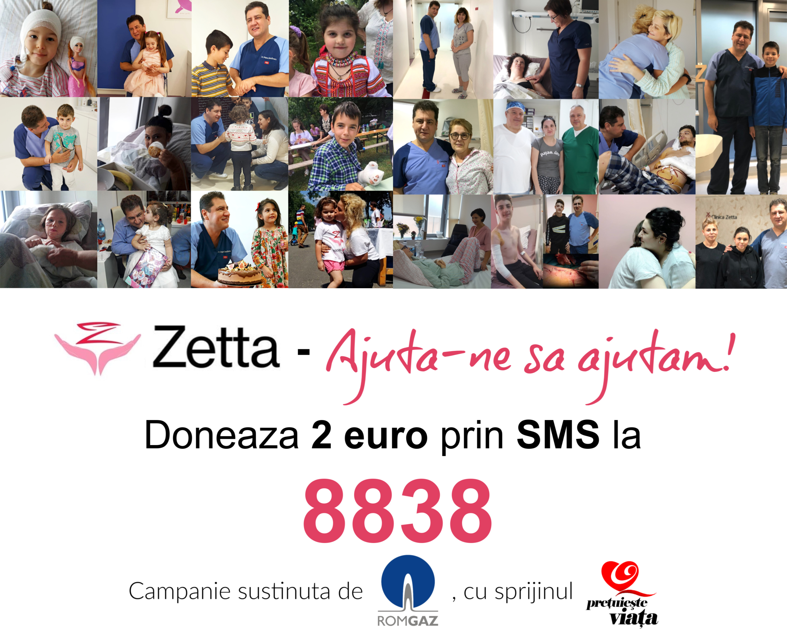 “Ajuta-ne sa ajutam!” este indemnul adresat atunci oricarui om cu suflet mare, capabil sa inteleaga valoarea demersului medicilor voluntari din Asociatia ZETTA, care au pus umar langa umar si au hotarat sa faca 50 de operatii complexe de reconstructie pro-bono intr-un an. Si totusi, campania a depasit toate asteptarile: sub coordonarea initiatorului, Dr. Drago? Zamfirescu - medicul roman ce si-a castigat renumele in tara, dar si peste hotare, prin reusitele sale in sala de operatii, dar si prin inovatiile sale in medicina - cele 50 de interventii dificile planificate intr-un an au avut loc in doar 5 luni! Oameni ale caror vieti au fost date peste cap fie de un incendiu, fie de un accident soldat cu rani grave sau amputatii, fie de un cancer ce a lasat urme pe corp sau de malformatii diverse – si, din pacate, nimeni nu are garantia de a fi ferit de un asemenea necaz – au atata nevoie de noi!